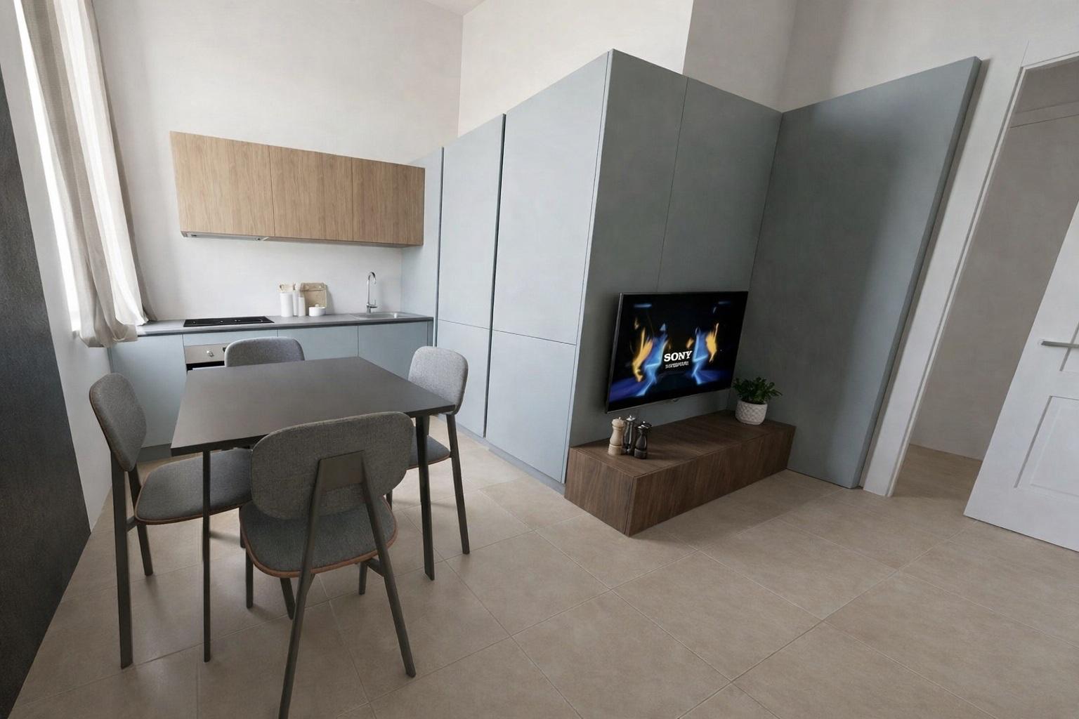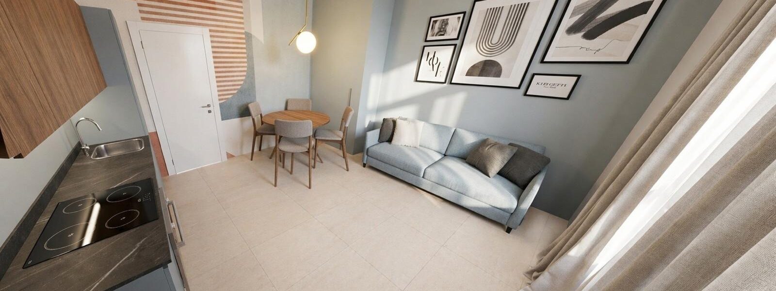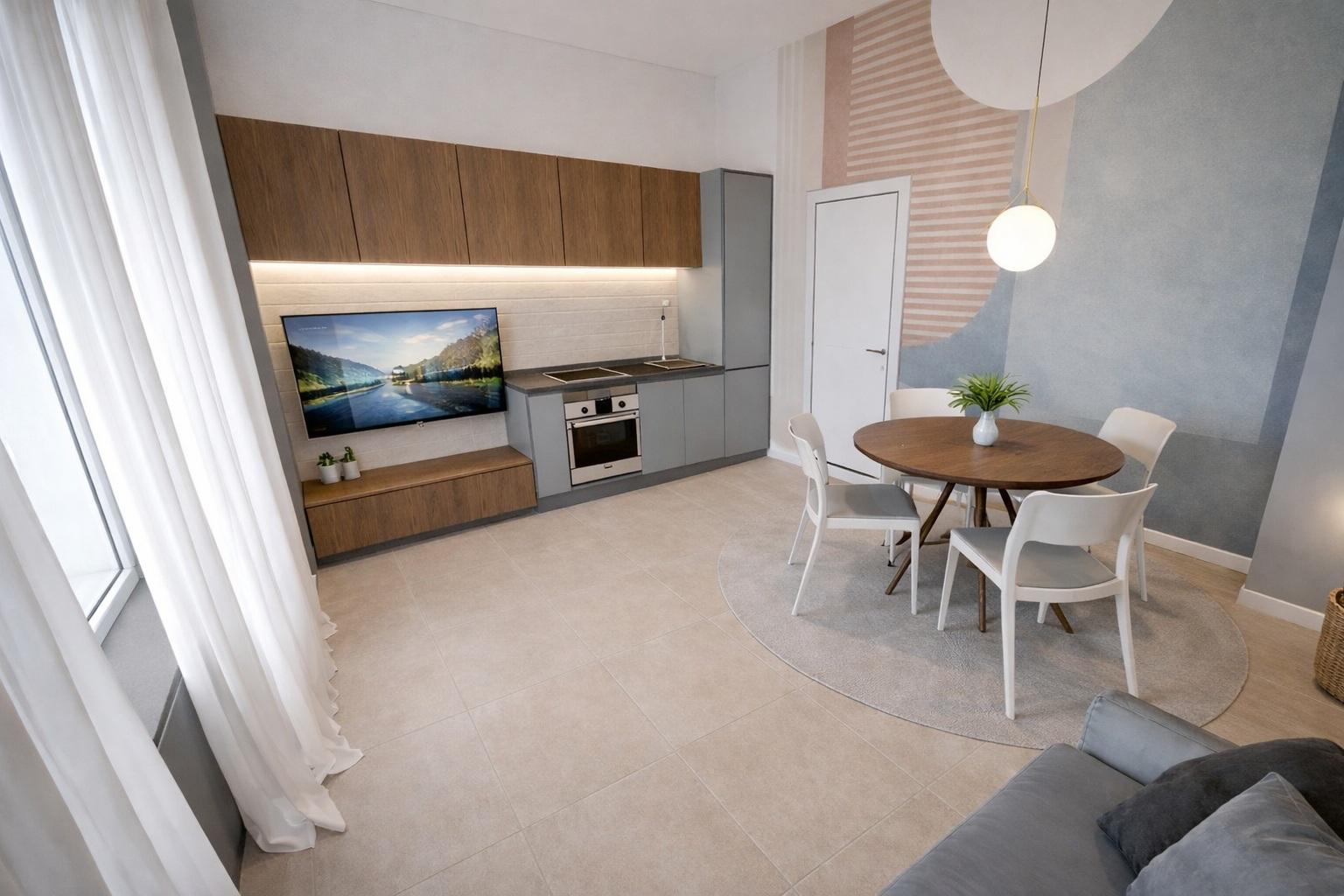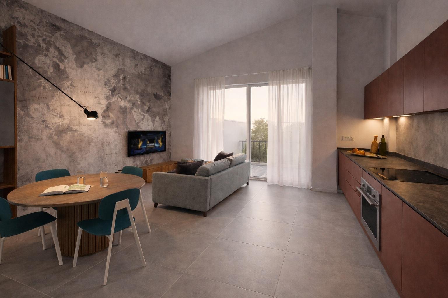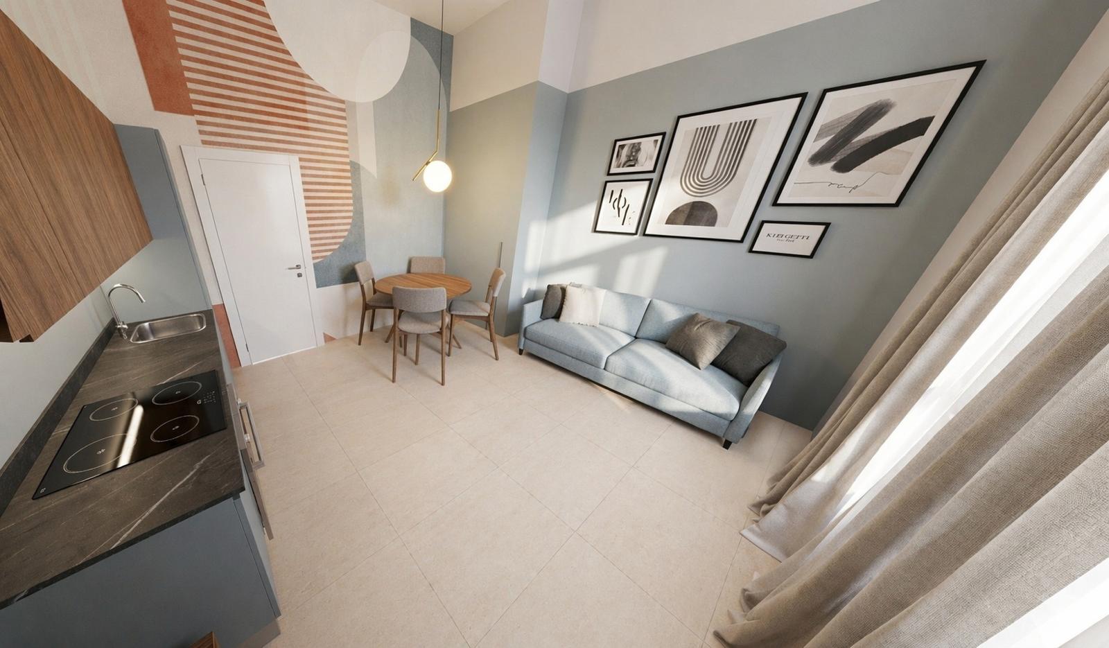 Soggiorno con cucina a vista