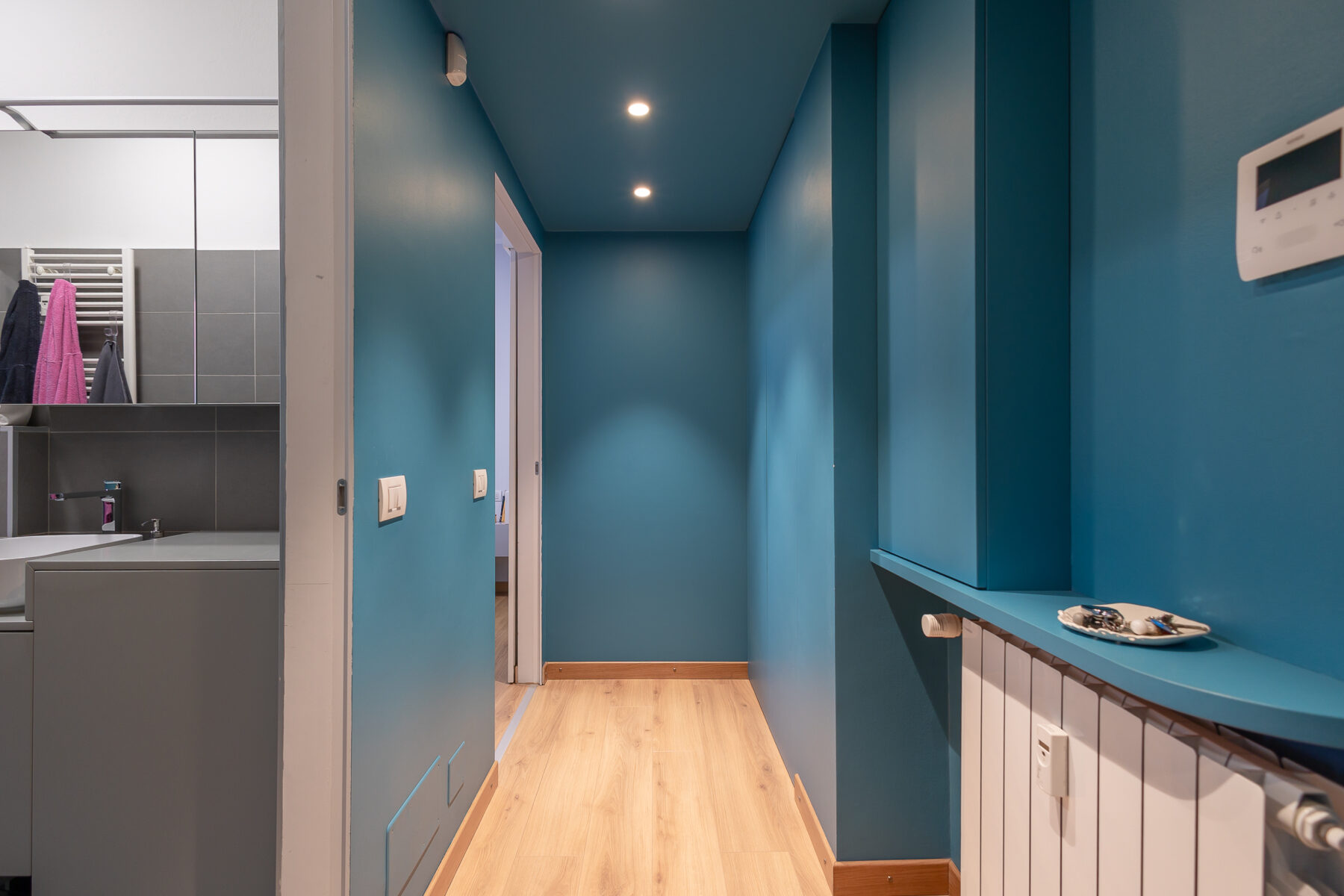 Il riscaldamento centralizzato con caloriferi dotati di termovalvole garantisce un comfort ottimale per le proprie esigenze. Gli interni sono rifiniti con pavimenti in parquet che conferiscono calore e stile all’ambiente, infissi in pvc con doppio vetro e zanzariere, l’appartamento è dotato di aria condizionata con pompa di calore in entrambe le stanze. La presenza di un videcitofono, e un sistema di allarme volumetrico e perimetrale assicurano sicurezza.
