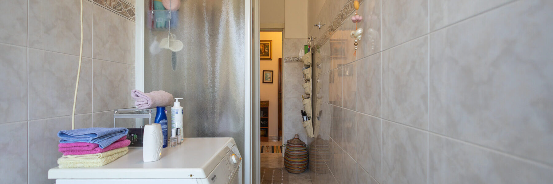 Il bagno, completo di doccia. Dotato di un balcone ampio e vivibile. Inoltre, la cantina offre ulteriore spazio per riporre oggetti e attrezzature.