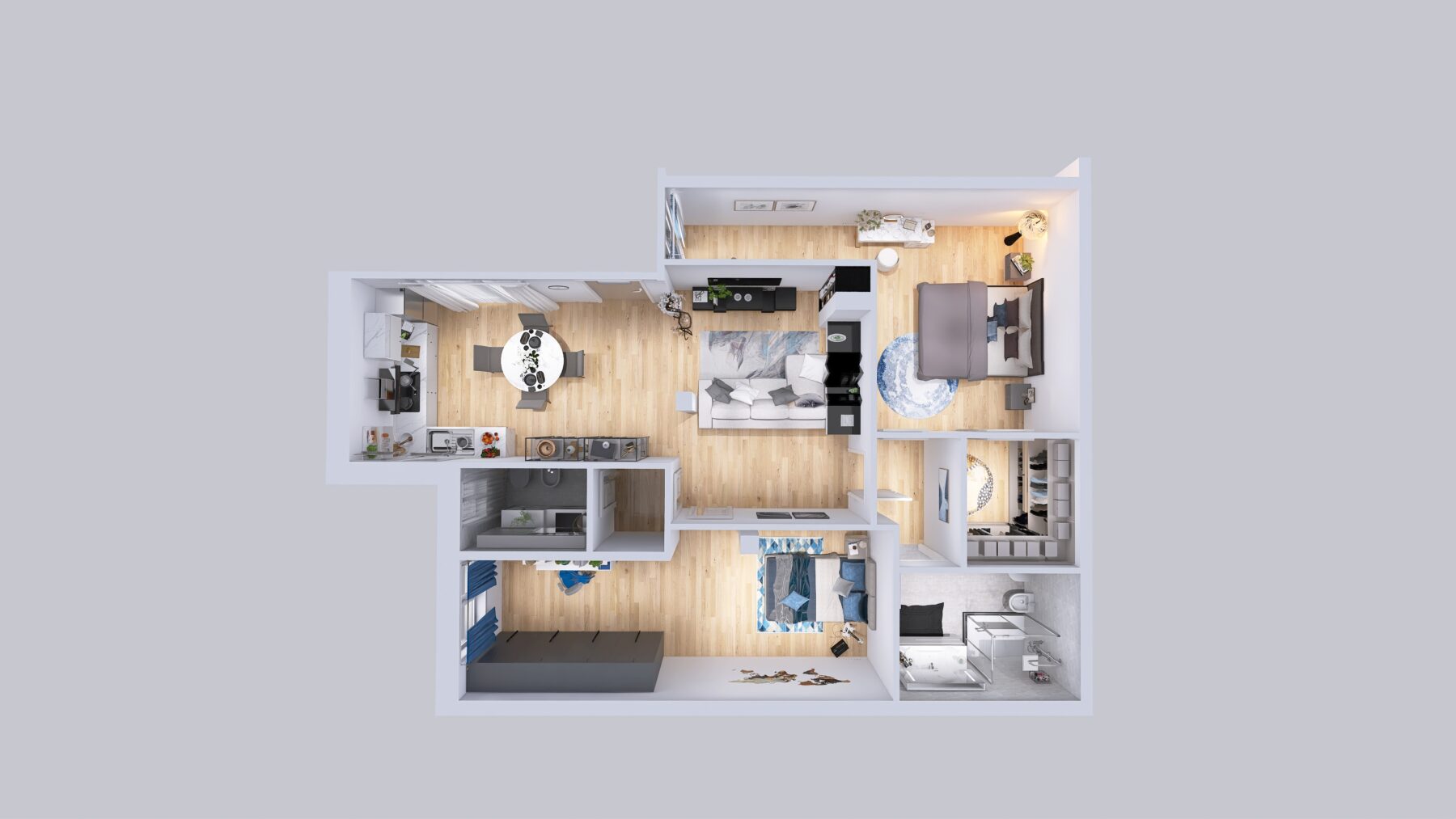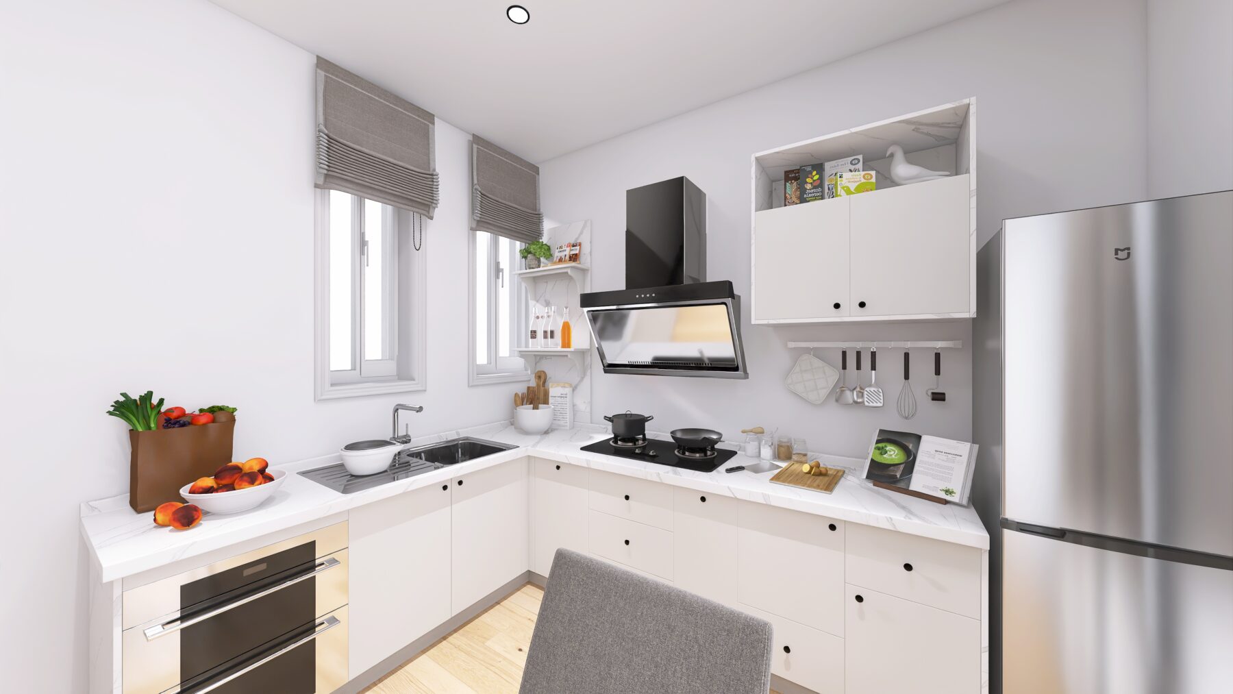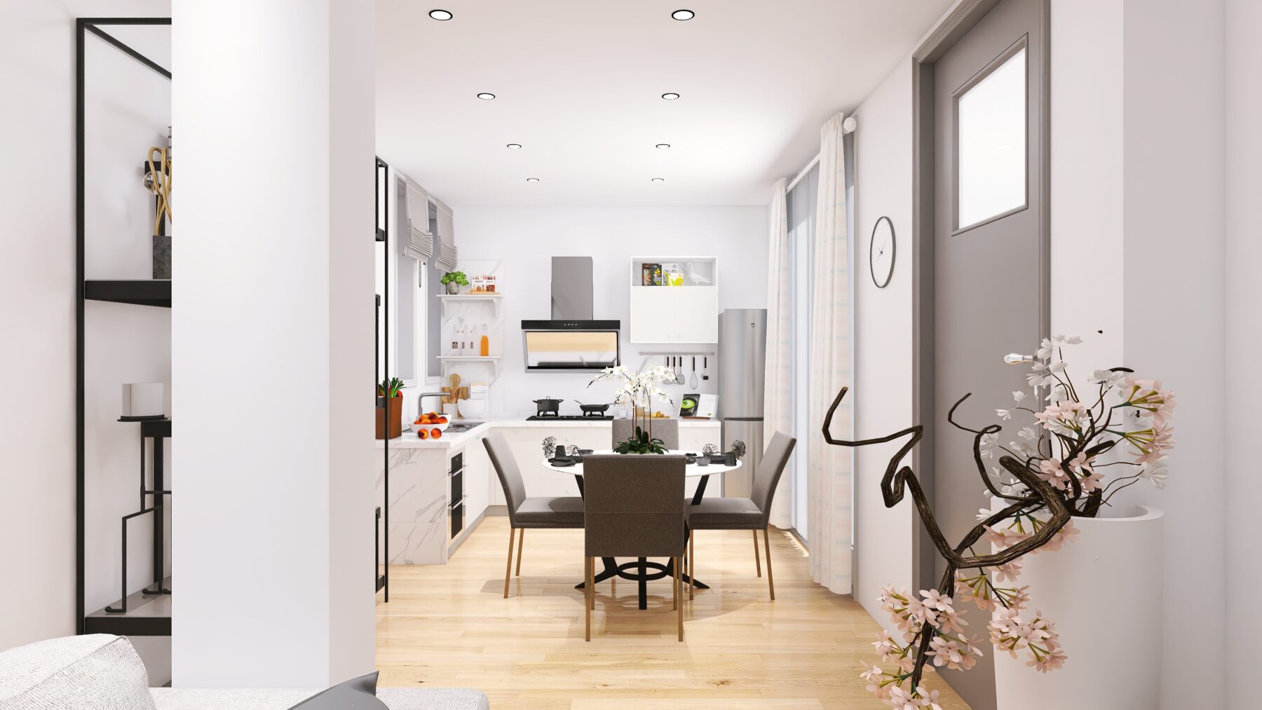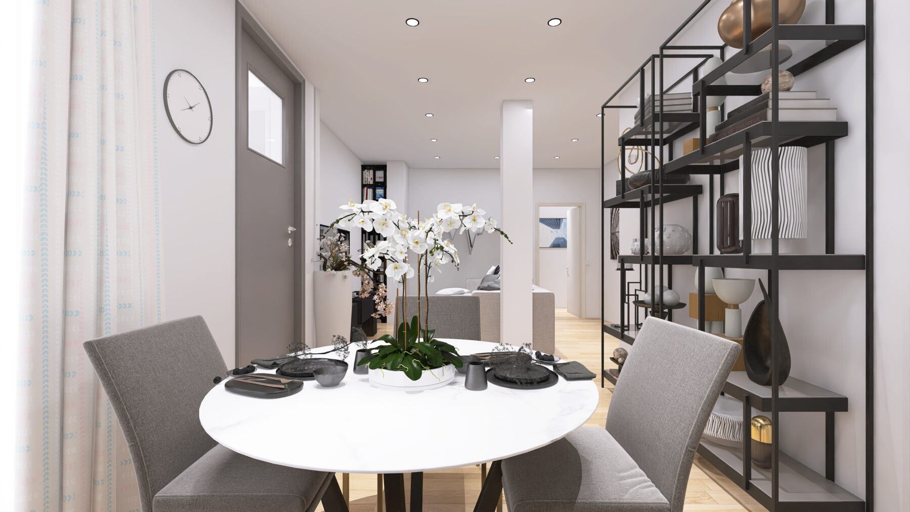 Gli appartamenti si trovano al piano S1, ma risultano luminosi e ariosi grazie all’attenta progettazione e alla qualità dei materiali utilizzati, le vetrate affacciano all’interno di una corte con ampie finestre.