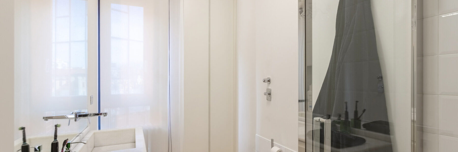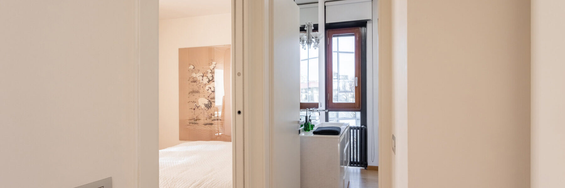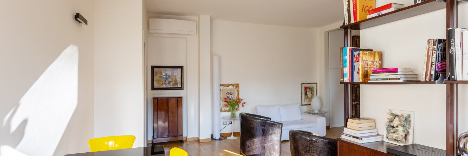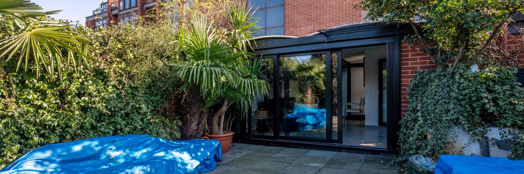 Salendo al piano superiore si accede alla veranda con un servizio al piano, la veranda si affaccia con ampie vetrate sul favoloso terrazzo di 40 mq piantumato, dove potrai goderti momenti di tranquillità con vista panoramica da cui si scorge lo splendido parco che circonda il condominio. Gli armadi realizzati su misura offrono soluzioni di storage eleganti e funzionali. L’appartamento è dotato di aria condizionata e riscaldamento centralizzato per il massimo comfort in ogni stagione.